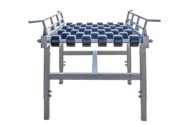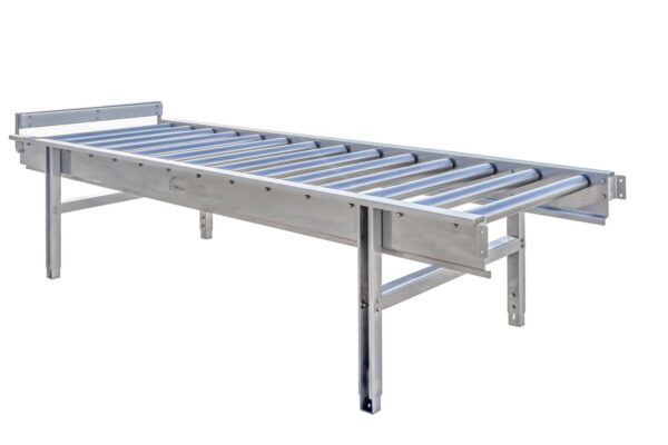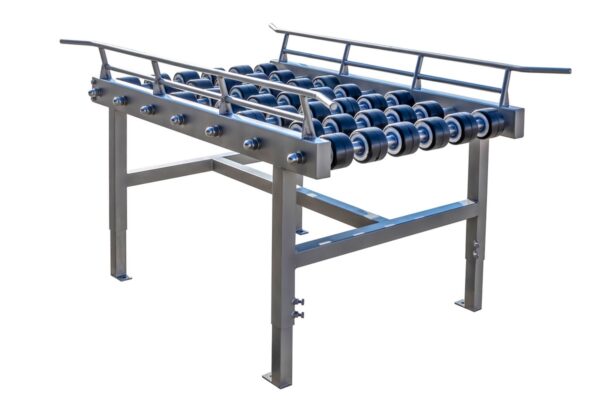 Dopravník nemá nainštalovaný pohon, ale vhodný sklon dopravníka, ktorý sa dosiahne nastavením výšky nôh, zabezpečuje správnu prevádzku samovoľného pohybu prepravovaného prvku. Dopravník je možné zostaviť v ľubovoľnej dĺžke so štandardnými segmentmi 1000 mm, 2000 mm a 90° zakrivením. Na požiadanie je možné vyrobiť aj iné dĺžky segmentov a zabezpečiť vhodné ochranné zábradlia, ktoré zabránia pádu prepravovaných predmetov. Valčeky môžu byť vyrobené z nehrdzavejúcej ocele alebo PVC a sú všetky