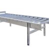 Gravitačný valčekový dopravník, ktorý sa používa na prepravu prepraviek s hydinou, podnosov na vajcia, obalov všetkých druhov atď.