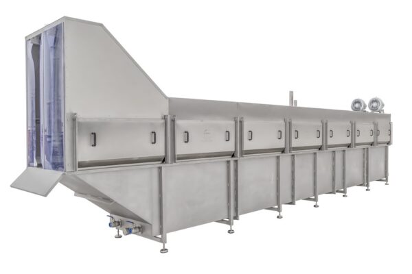 Zabitá a vykrvená hydina sa dopravuje do spaľovacieho zariadenia na strmeňoch porážkového dopravníka. V spaľovacej nádrži sa vták ponorí do horúcej vody na dostatočne dlhý čas. Horúca voda preniká medzi perie až ku koži vtáka a umožňuje ošklbanie peria v šklbacom zariadení. Prenikanie vody medzi perie vtáka umožňujú čerpadlá inštalované v šklbacom zariadení. Najúčinnejším riešením je použitie špeciálnych vzduchových turbín namiesto čerpadiel. Tieto turbíny nielenže zabraňujú úniku horúcej pary zo skaldera, ale ju aj vháňajú späť do vody,