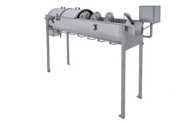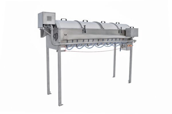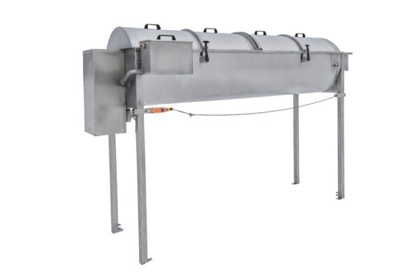 Zariadenie sa používa na ošparovanie hydinových stehien s cieľom očistiť ich na ďalšie spracovanie.