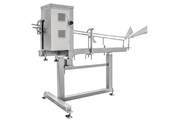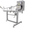 Zariadenie na odrezávanie hláv je určené na automatické odrezávanie hláv kurčiat zavesených na dopravných strmeňoch bezprostredne po omráčení elektrickým paralyzérom.