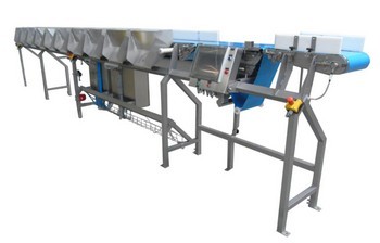 Taśmowa segregacja wagowa służy do posortowania ubitego drobiu tuszki lub podzielonych elementów tuszki drobiowej.