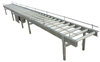 Valčekový dopravník s pohonom, ktorý sa používa na prepravu ťažkých predmetov pravidelného tvaru s relatívne veľkou styčnou plochou s valčekmi, napr. kontajnerov, debien atď.