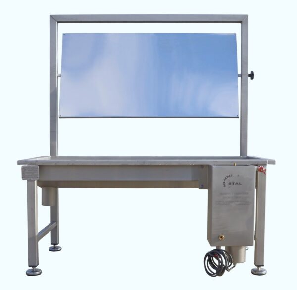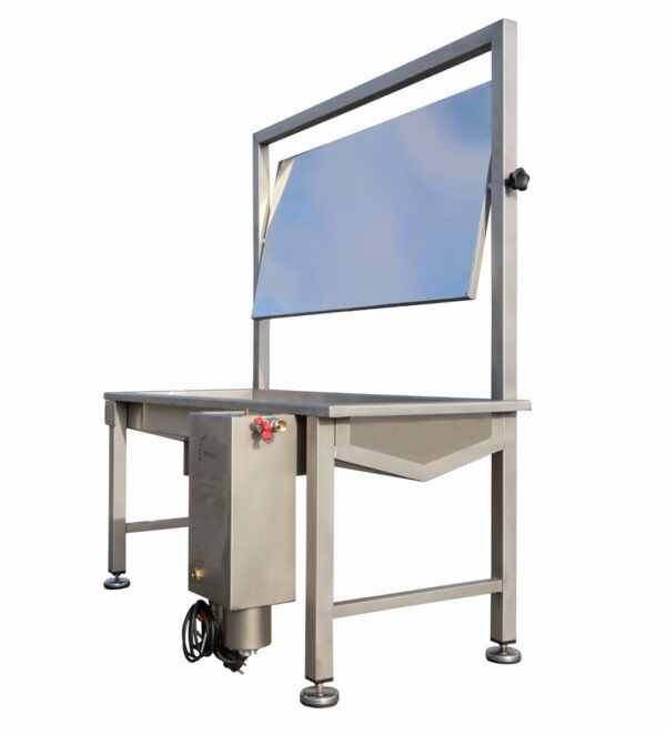 Nerezová vaňa je pripevnená k nosnej konštrukcii z nerezových materiálov odolných voči kyselinám, na ktorej sa pohybujú miešačky s hydinou prepravovanou závesným dopravníkom. Testovací stojan sa umiestni na vhodné miesto (po vybratí obalu z jatočného tela). Zrkadlo namontované na nosnej konštrukcii umožňuje lekárovi podrobne preskúmať jatočné telo vtáka (z oboch strán). Stanica je vybavená aj sterilizátorom nástrojov, horúcou vodou zapínanou cez kolenový ventil s časovačom, aby lekár mohol vykonať vyšetrenie hygienickým spôsobom.