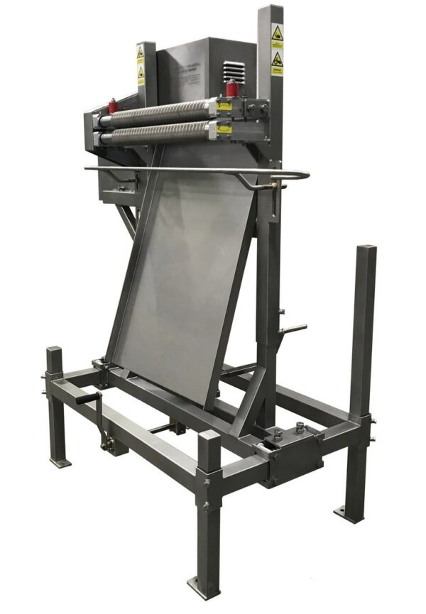 Hlavným konštrukčným prvkom šklbacieho stroja je rám, na ktorom sú upevnené dva hriadele na šklbanie peria. Výška zariadenia sa nastavuje mechanickým zdvihákom namontovaným v spodnej časti šklbacieho stroja. Proces šklbania (odstraňovania) chvostového peria by sa mal uskutočniť, keď je jatočné telo už oparené. Šklbací stroj je vybavený samostatným dopravným mechanizmom (poháňaným horným porážkovým dopravníkom), ktorého úlohou je umiestniť strmene, na ktorých sú jatočné telá zavesené počas odstraňovania chvostového peria. Okrem toho je stroj vybavený prívodom stlačeného vzduchu z bočného dúchadla a nožovou dýzou, ktorej úlohou je pôsobením prúdu vzduchu podporiť prechod chvostového peria medzi šklbacími valcami.