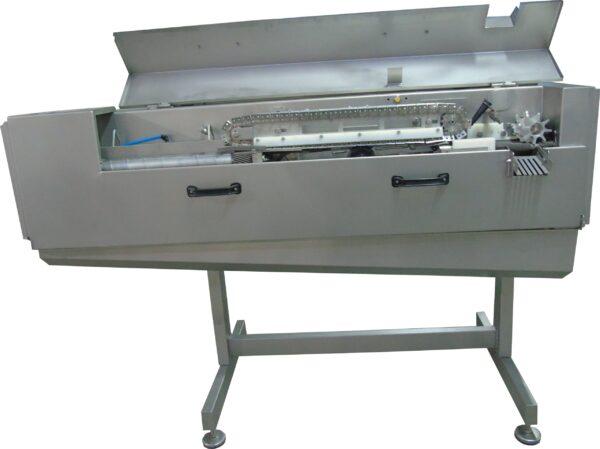 Žalúdok vstupuje do automatu vstupným otvorom a dostáva sa do valcov, ktoré ho posúvajú cez tieto kroky spracovania: oddelenie balíka čriev, rozrezanie, vyčistenie a stiahnutie kože z vnútra. Systém vodidiel stabilizuje žalúdky a umiestňuje ich do správnej polohy vzhľadom na ďalšie spracovateľské nástroje. Voda dodávaná do stroja podporuje pohyb žalúdkov a dôkladne odplavuje nahromadené nečistoty.